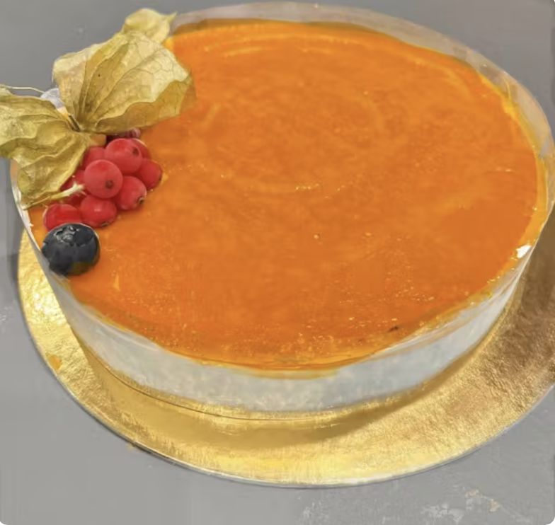 La nostra versione della Cheesecake di crema al "formaggio veg" e composta di frutti, decorata con frutta di stagione oppure ganache al cioccolato