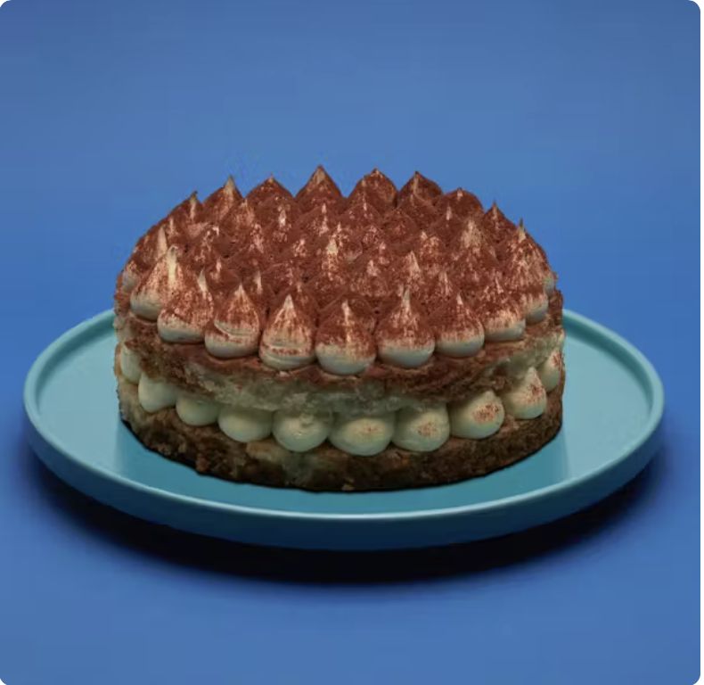 Pan di Spagna bianco bagnato nel caffè, crema vegetale fatto da noi e nevicata di cacao amaro