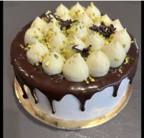 Torta farcita con drip di cioccolato fondente e nuvole di chantilly