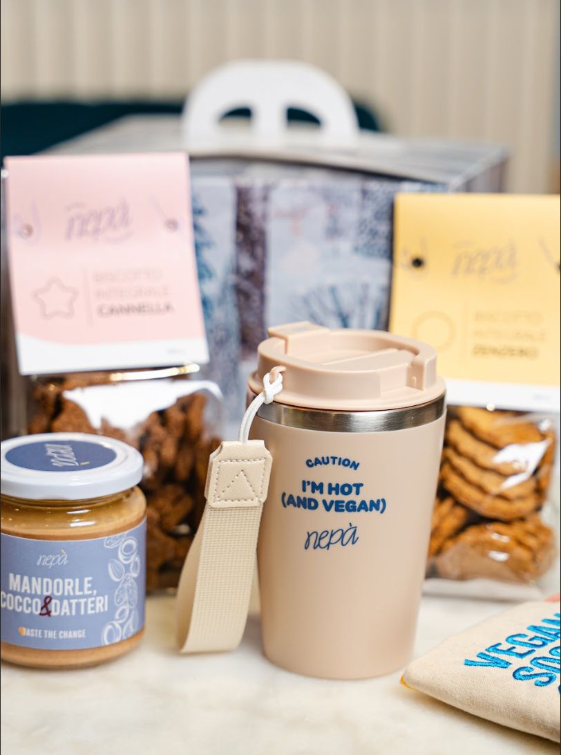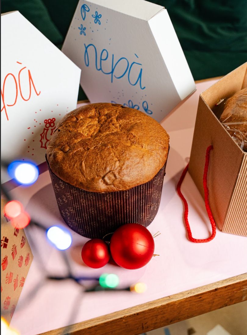 Nella nostra box natalizia troverai: panettone (al cioccolato o classico), biscottini integrali, meringhette, una crema di mandorle, datteri e cocco, e un prodotto a scelta tra la tazza per cappuccino take away o la nostra tote bag ricamata a mano! Un regalo perfetto per le feste!