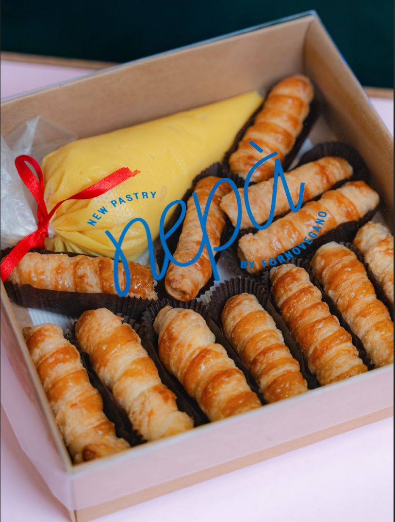 In questa box troverai dei cannoncini croccanti ed una sac a poche ripiena di crema golosa per farcirli. In questo modo si conserveranno più a lungo e sono perfetti come regalo!